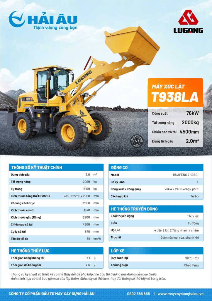 Máy Xúc Lật Lugong T938LA – Gầu 2.0m³